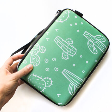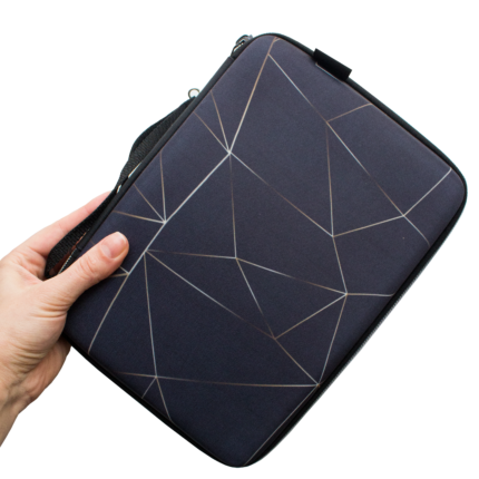 Functional organizer accessory for carrying and storing your art materials. It will fit 2-3 A5 sketchbooks and smaller formats, palettes, brushes, about 30 markers, etc.