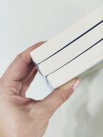 15×15 cm kare bir eskiz defteri 160 g/m2’lik 30 yaprak beyaz Alman yapımı kağıt içerir. İçinde su geçirmez bir aydınger