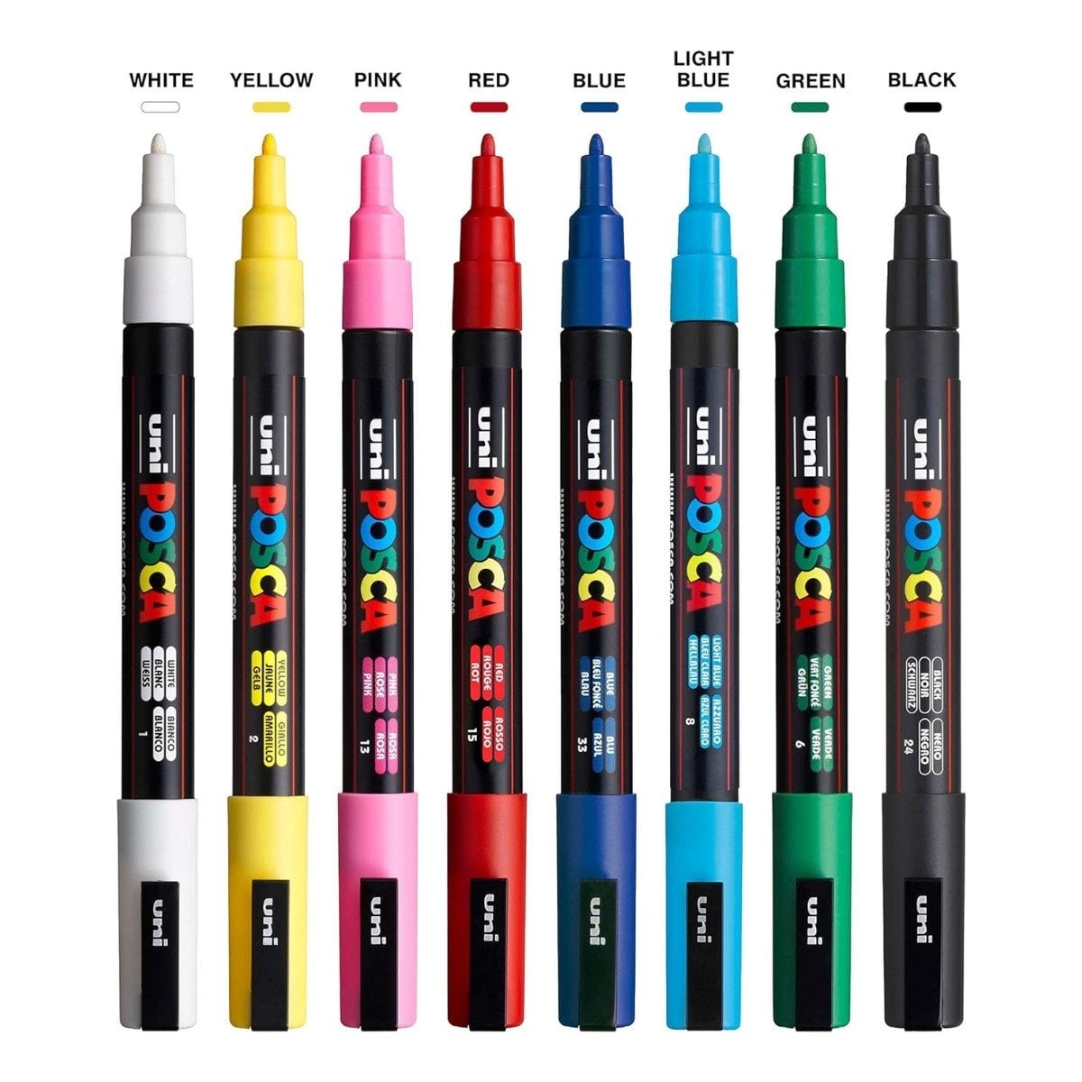 Uni Posca Su Bazlı Marker Seti PC-3M 0.9-1.3mm 8’li hangi renkler içerir?